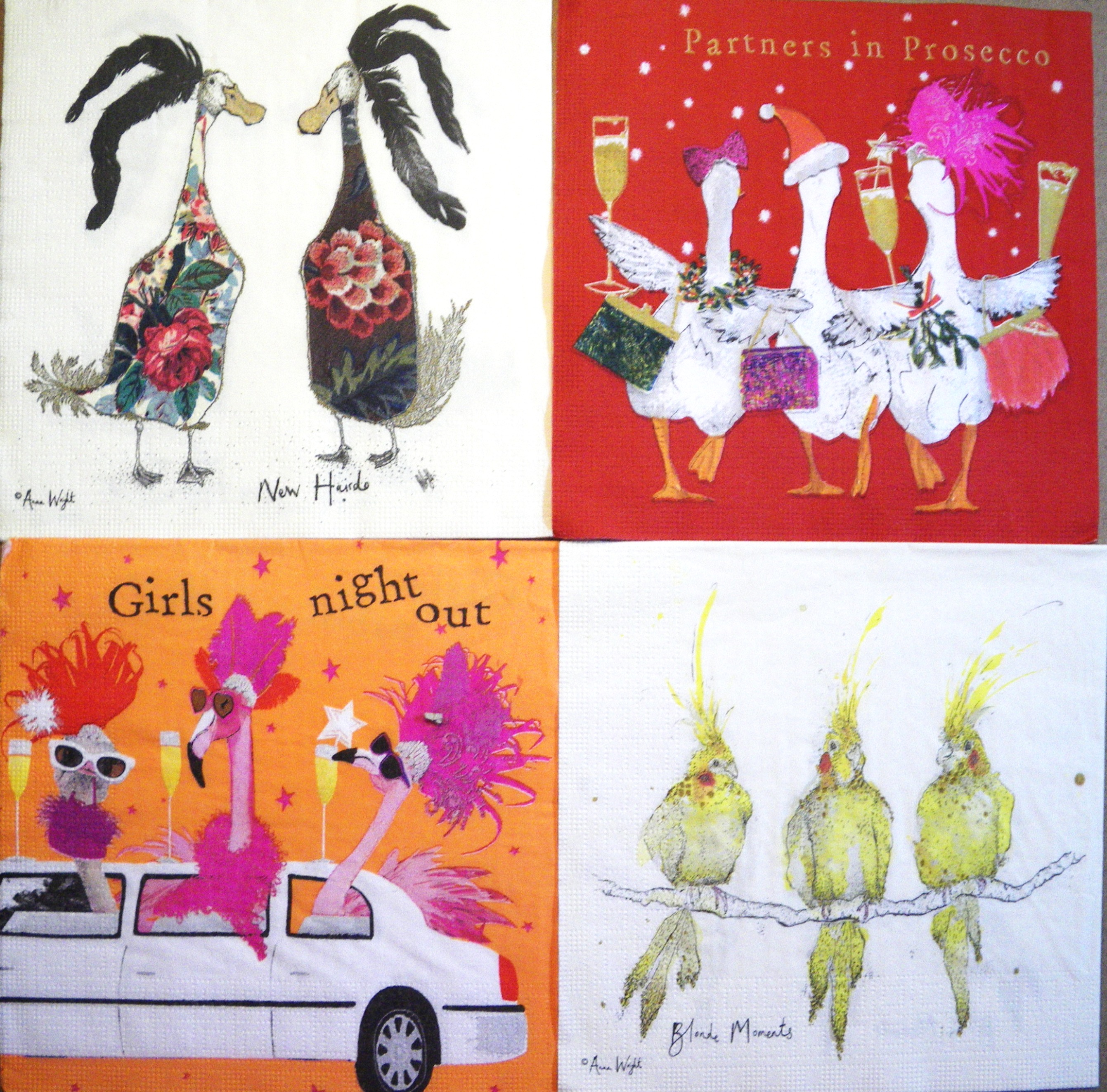 Set de 4 servetele care pot fi folosite pentru decorarea obiectelor din lemn, carton, sticla, ceramica, textile, etc., folosind tehnica servetelului.