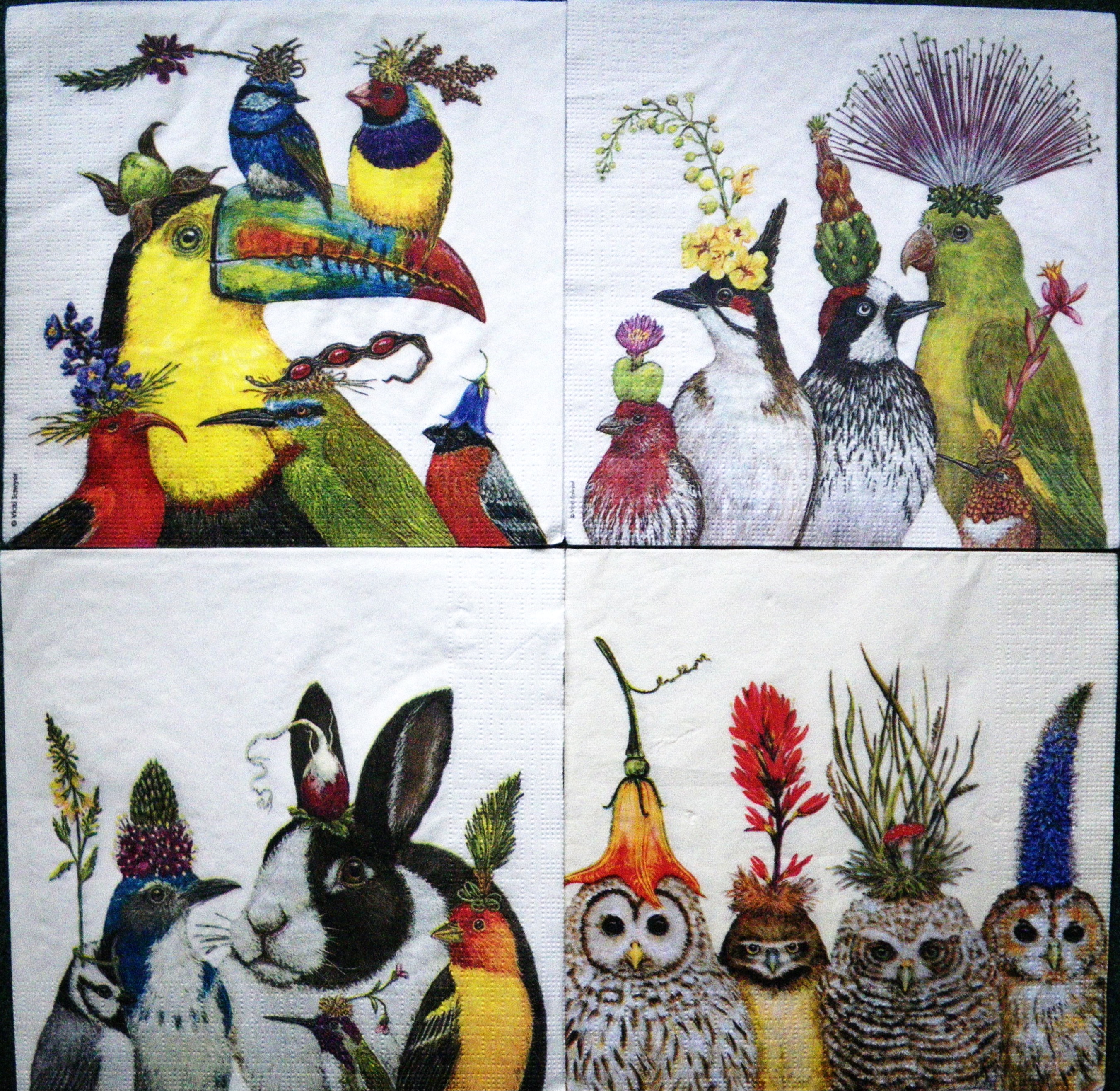 Set de 4 servetele care pot fi folosite pentru decorarea obiectelor din lemn, carton, sticla, ceramica, textile, etc., folosind tehnica servetelului.